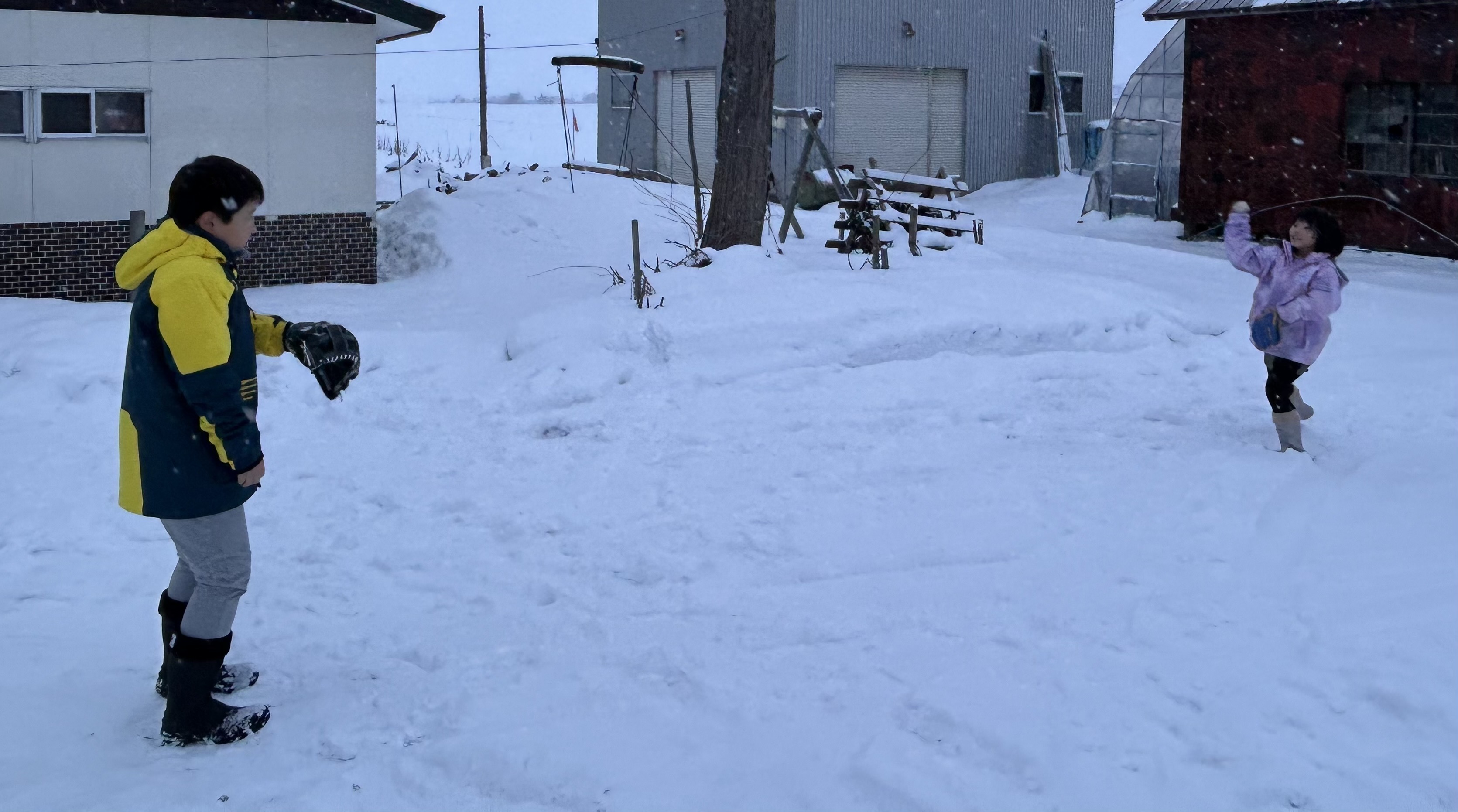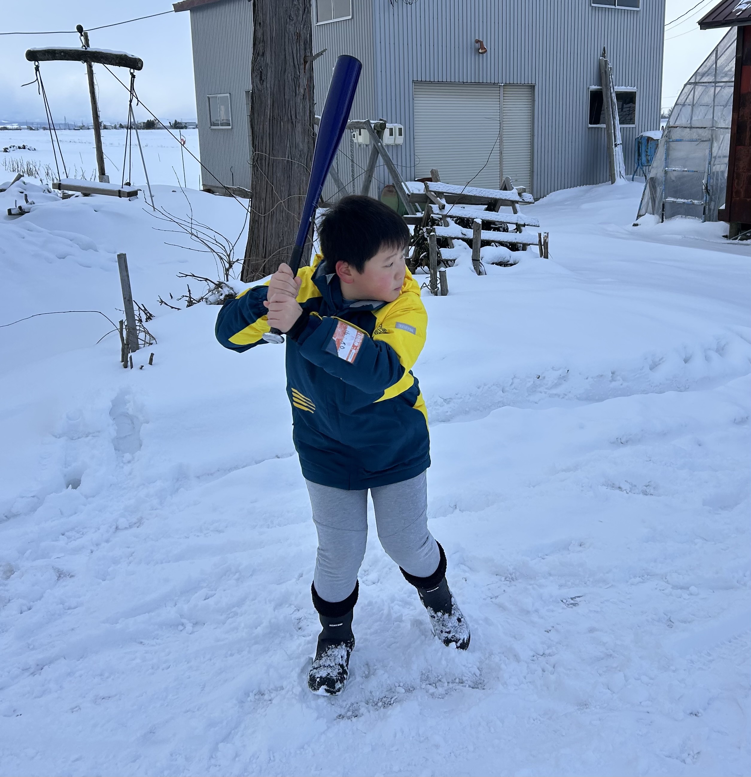 フタバは年末に祖父の家で極寒キャッチボールを頑張りました。